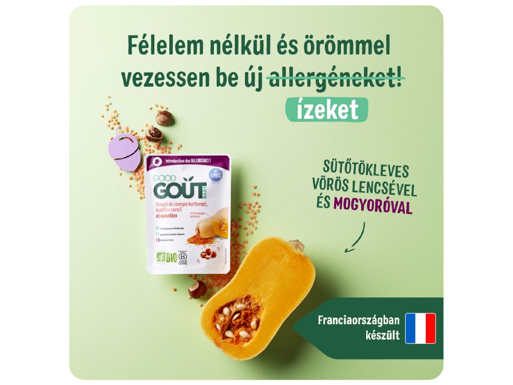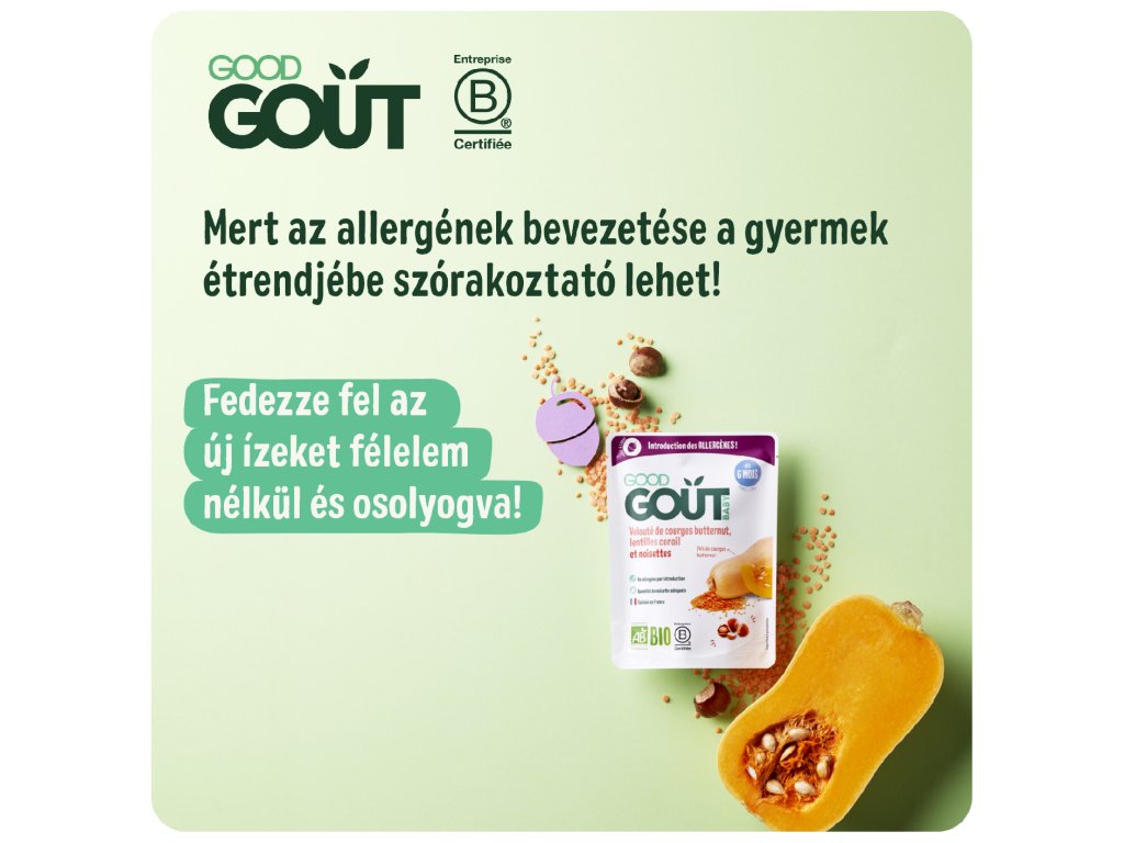 A Good Goutnál szeretjük meglepni a gyerekek ízlését érdekes alapanyagokkal és a természet legjavával! Bár a szabadban gyakran találkozhatunk a mogyoróval, a gyümölcsét ritkán találjuk meg a gyermekétkeztetésben. Ezért találtuk ki azt az ideális ételt, amellyel a babák a 6. hónap végétől megismerkedhetnek kedvenc mogyorójuk édes ízével. Önök, a szülők számára pedig egy újabb allergén kerül a baba étrendjébe.