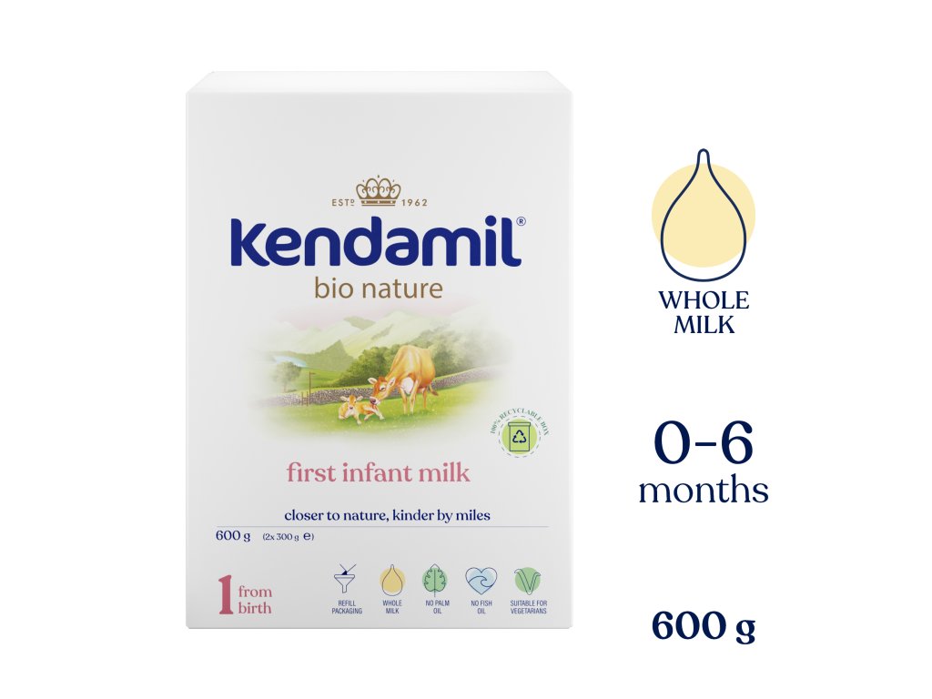 Fontos figyelmeztetés: A szoptatás a csecsemők táplálásának legjobb módja. A KENDAMIL BIO NATURE 1 anyatej-helyettesítő tápszer alkalmas a csecsemők táplálására születésüktől kezdve, ha nem szoptathatók, és csak független, orvosi, táplálkozási vagy gyógyszerészi képesítéssel rendelkező személyek, illetve az anya és a gyermek gondozásáért felelős egyéb szakemberek tanácsára használható. Az első fogak növekedésének időszakában ügyeljen a szájhigiéniára, különösen lefekvés előtt. Kövesse az elkészítésre, etetésre és tárolásra vonatkozó utasításokat, különben veszélyezteti a csecsemő egészségét.