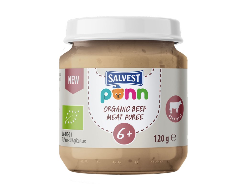 A krémes állagú Põnn marhapüré bio alapanyagokból készül, és lehetővé teszi a szülők számára, hogy kényelmesen adjanak húst a baba étrendjéhez! A marhapüré 40% húst tartalmaz, és úgy tervezték, hogy 1:2 arányban keverjük össze egy kevés zöldségpürével. A zöldségpüré mennyisége szükség esetén növelhető.