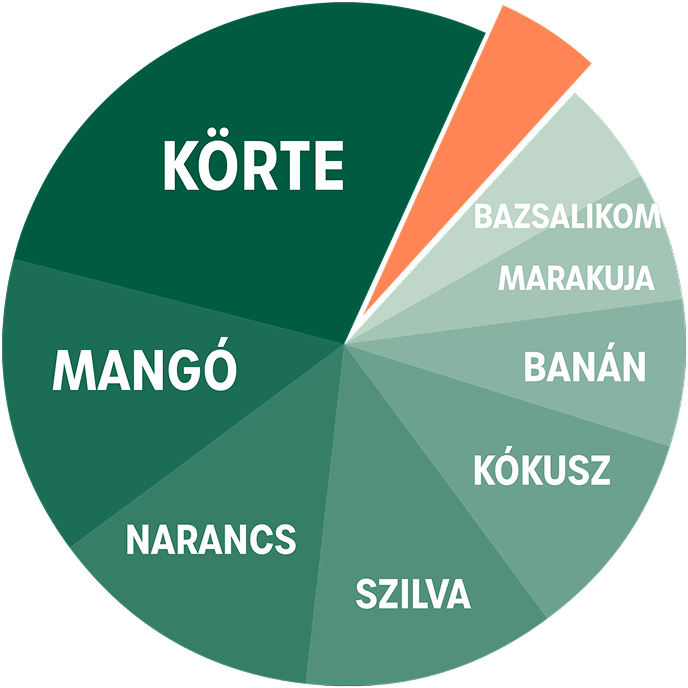 Összetétel: *körtepüré, *mangópüré 14%, *narancspép, *szilvapüré 12%, *kókuszkeverék 10% (kókuszkivonat, víz), *banánpüré, *maracujalé 1%, *chia mag (Salvia hispanica) 0,8%, *bazsalikom 0,06%. *biogazdálkodásból.