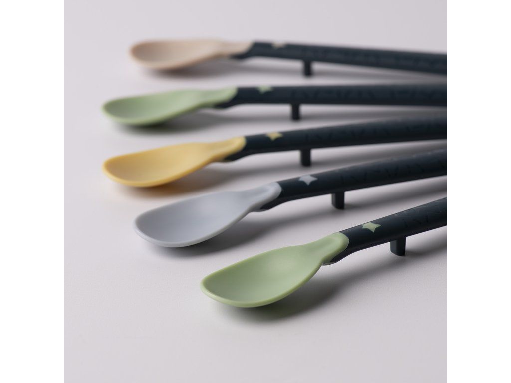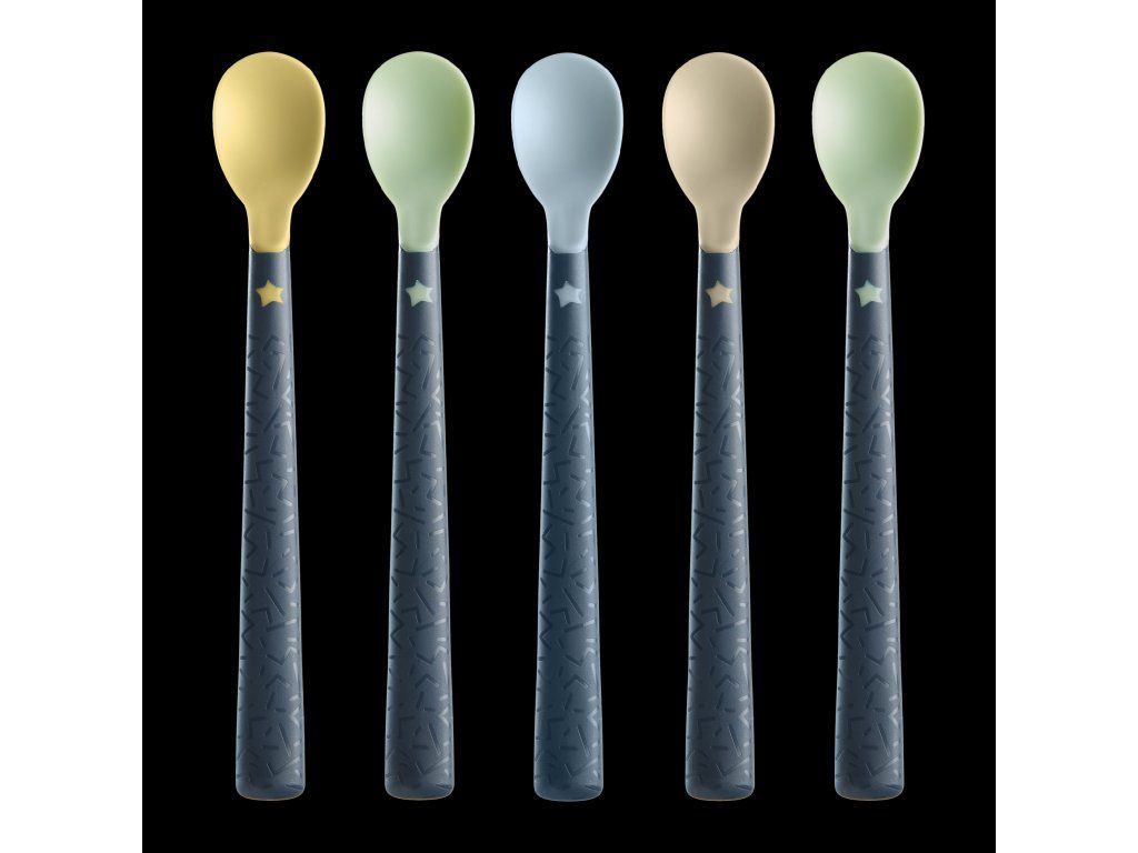A hosszú nyelű kanalakat 4 hónapos csecsemők etetésére tervezték. Sekély formájuk ideális az első elválasztáshoz, a kanál puha hegye maximálisan kíméletes a baba érzékeny ínyéhez. A hosszú fogantyú megkönnyíti az üvegből való kihúzást.